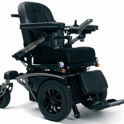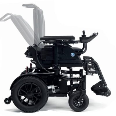Com apoios de pés e braços amovíveis e rebatíveis.