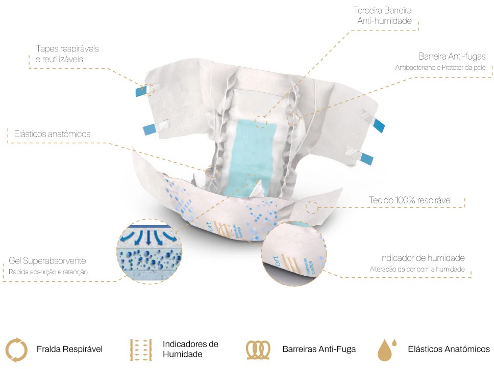 Fralda para Adulto – oferece conforto, proteção e segurança para quem lida com incontinência moderada. Equipada com barreiras anti-fugas laterais e indicadores de humidade, evita vazamentos e mantém a pele seca e saudável.